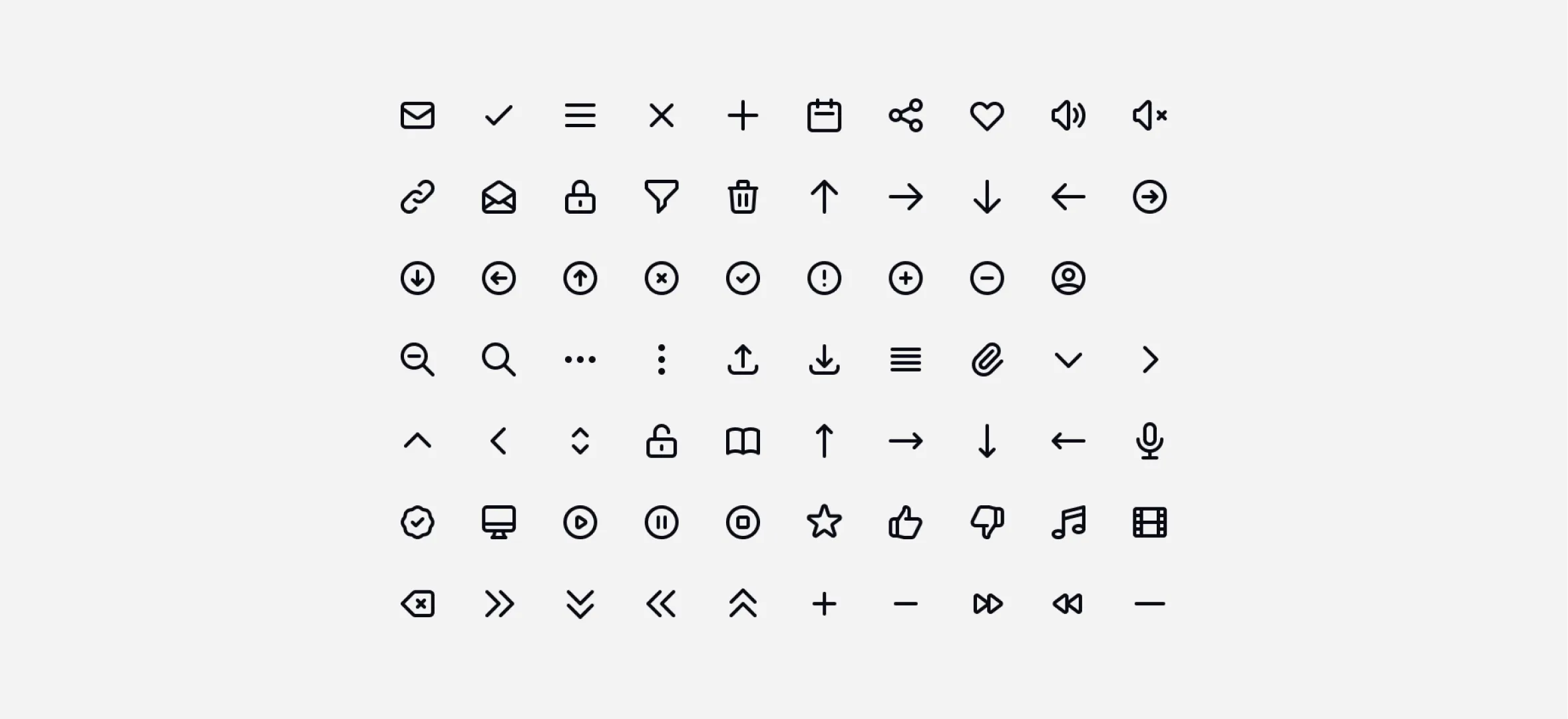 New icons can be added as needed, but the design should follow the same outline style as the existing set, 2px stroke weight, 24x24 bounding box for primary navigation and marketing sections.