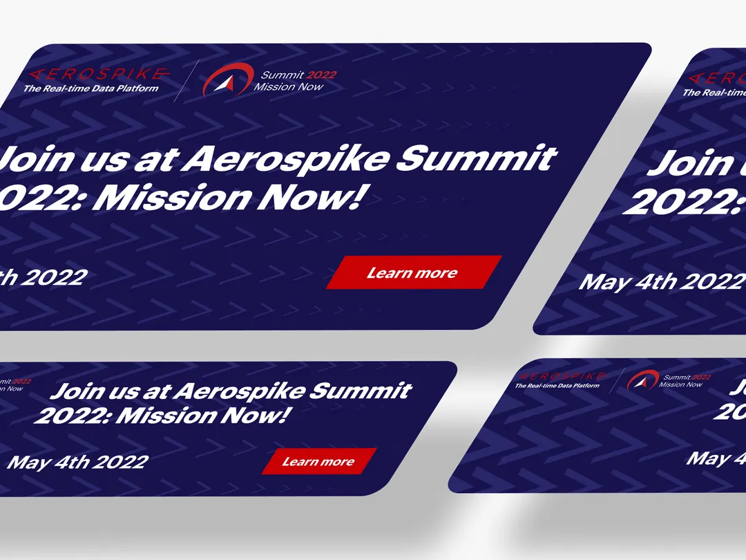 Through a broad range of print and digital projects, we have maintained the Aerospike brand guidelines and applied them to diverse requests. We've worked on everything from posters, flyers, email signatures, and banners to event booths that their customers recognise.