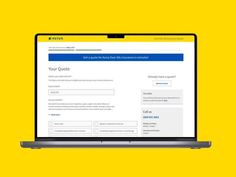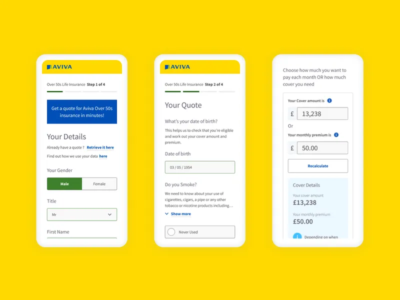 Across several projects, our main aim has been to increase conversion, whether sign-ups or sales. Thorough user testing sessions have ensured that our design work leads to the intended user response. The projects are still in development, so watch this space to see what we achieved with the Aviva teams!