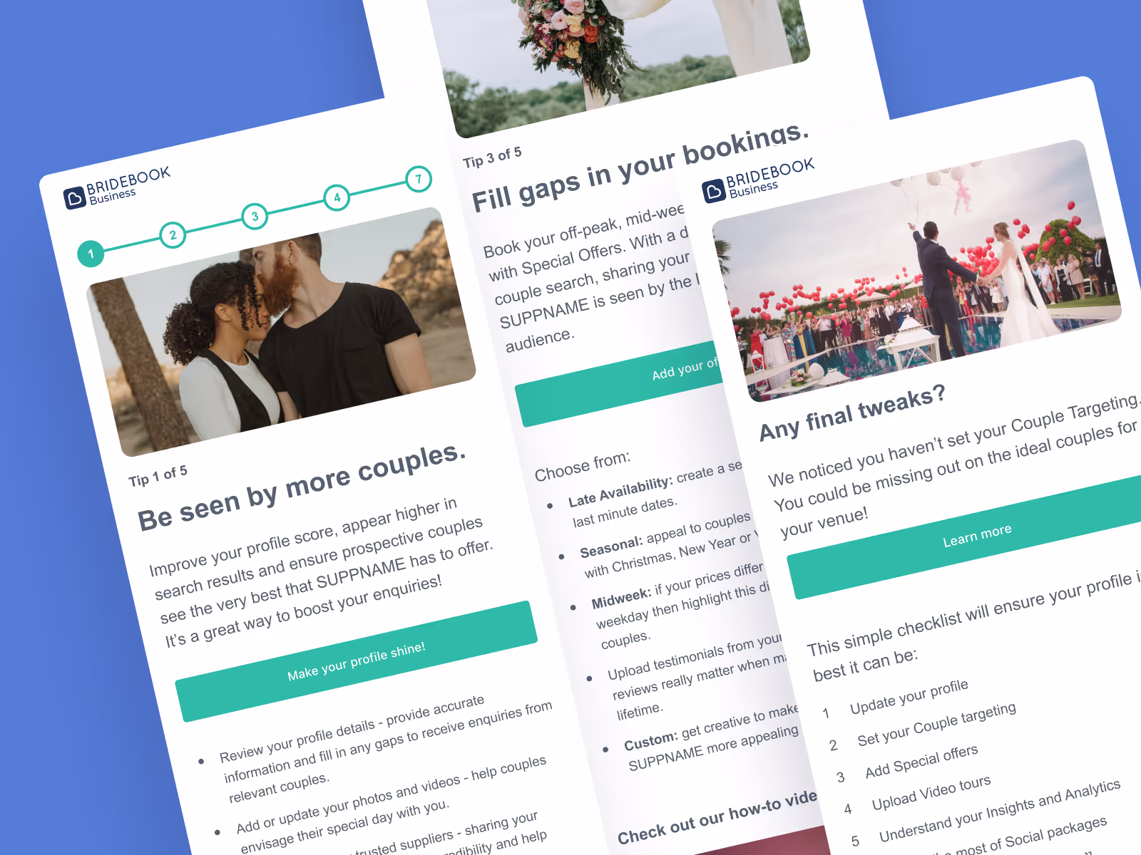 From marketing to product, we have worked with Bridebook creating solid and enduring visual campaigns. The London bus and Tube advertisements were a considerable success and bookings are on the up! We have seen them weather the storm of covid cancellations and are happy to say that we are their go-to design resource as bookings are on the rise again.