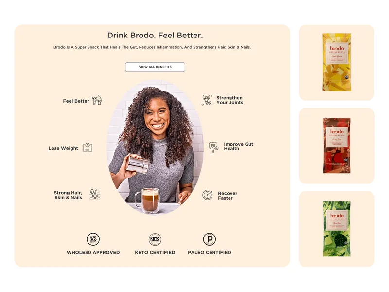 Brodo is an American food & drinks company that offers the most delicious, nutritious broth on the planet. Founded in 2014 in New York and sold across the US, Brodo is America's leading broth company. We were lucky enough to be tasked with redesigning their e-commerce site from the ground up.