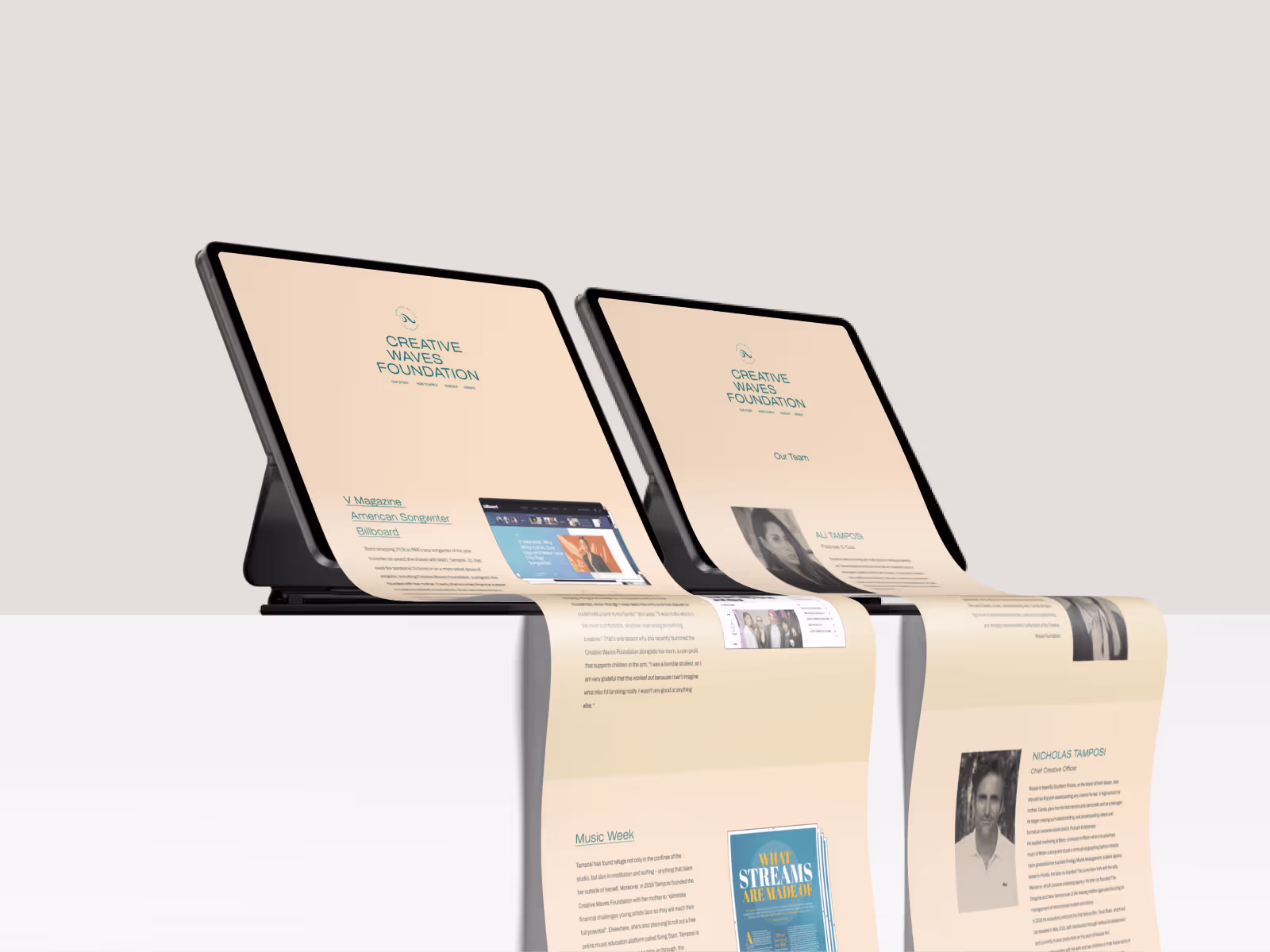 Creative Waves is a non-profit foundation that helps underprivileged kids in the US access life-changing music education and opportunities. Founded by Grammy-nominated songwriter Ali Tamposi, the foundation is constantly fundraising to help improve music in the community and support the future of music education, which has received massive budget cuts. We worked with their team to design a powerful graphic brand and site that fulfilled their ambitions.