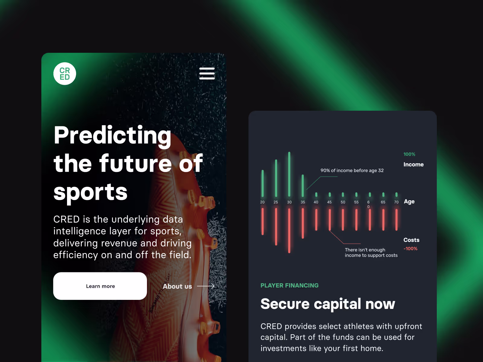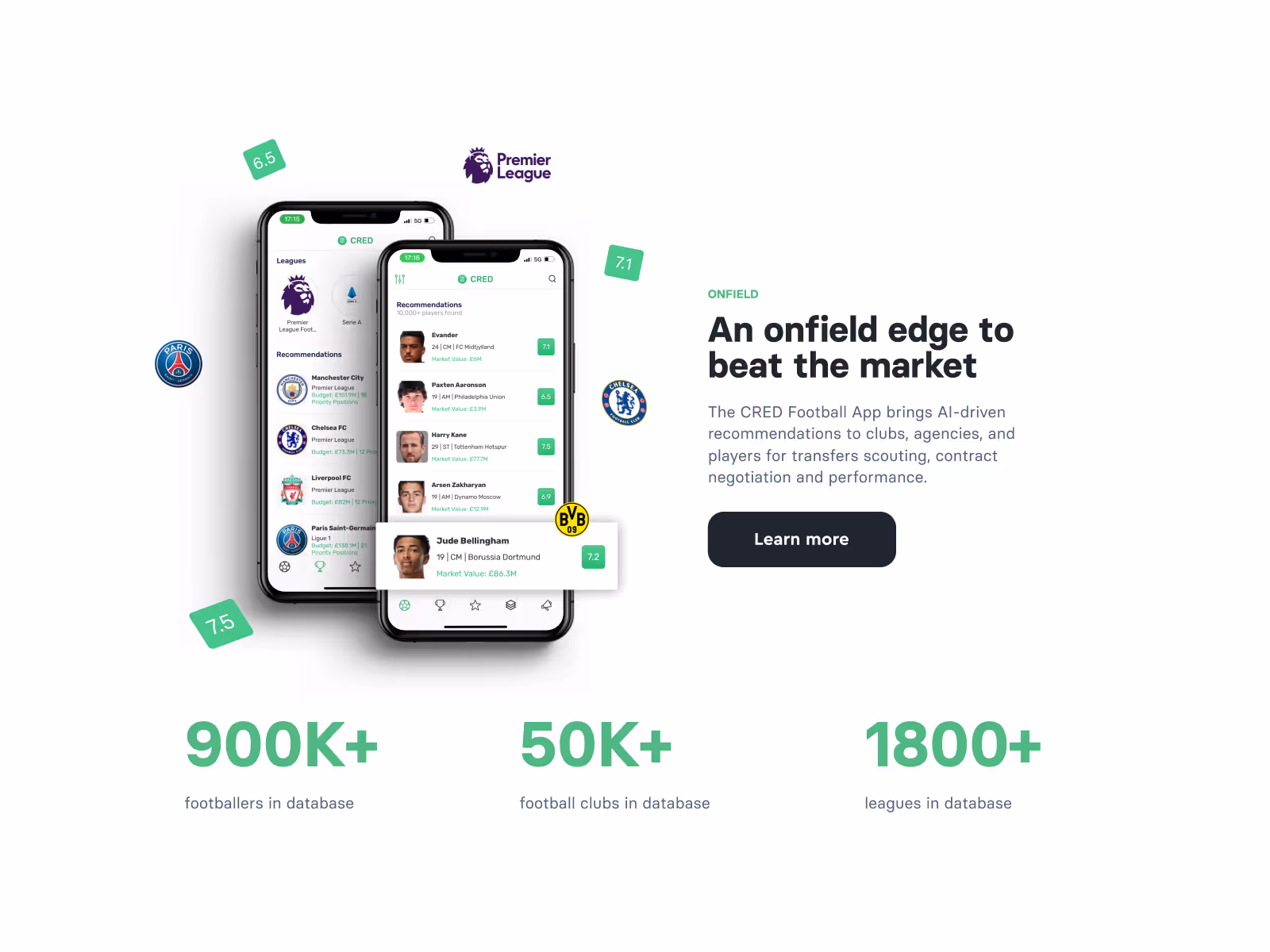 CRED is the most extensive statistics database in the sports industry. Their tagline is "predicting the future of sports" because they use innovative technology to help pair the right players with the right clubs. Their platform investigates player statistics and club performance to determine where a player would perform best.
