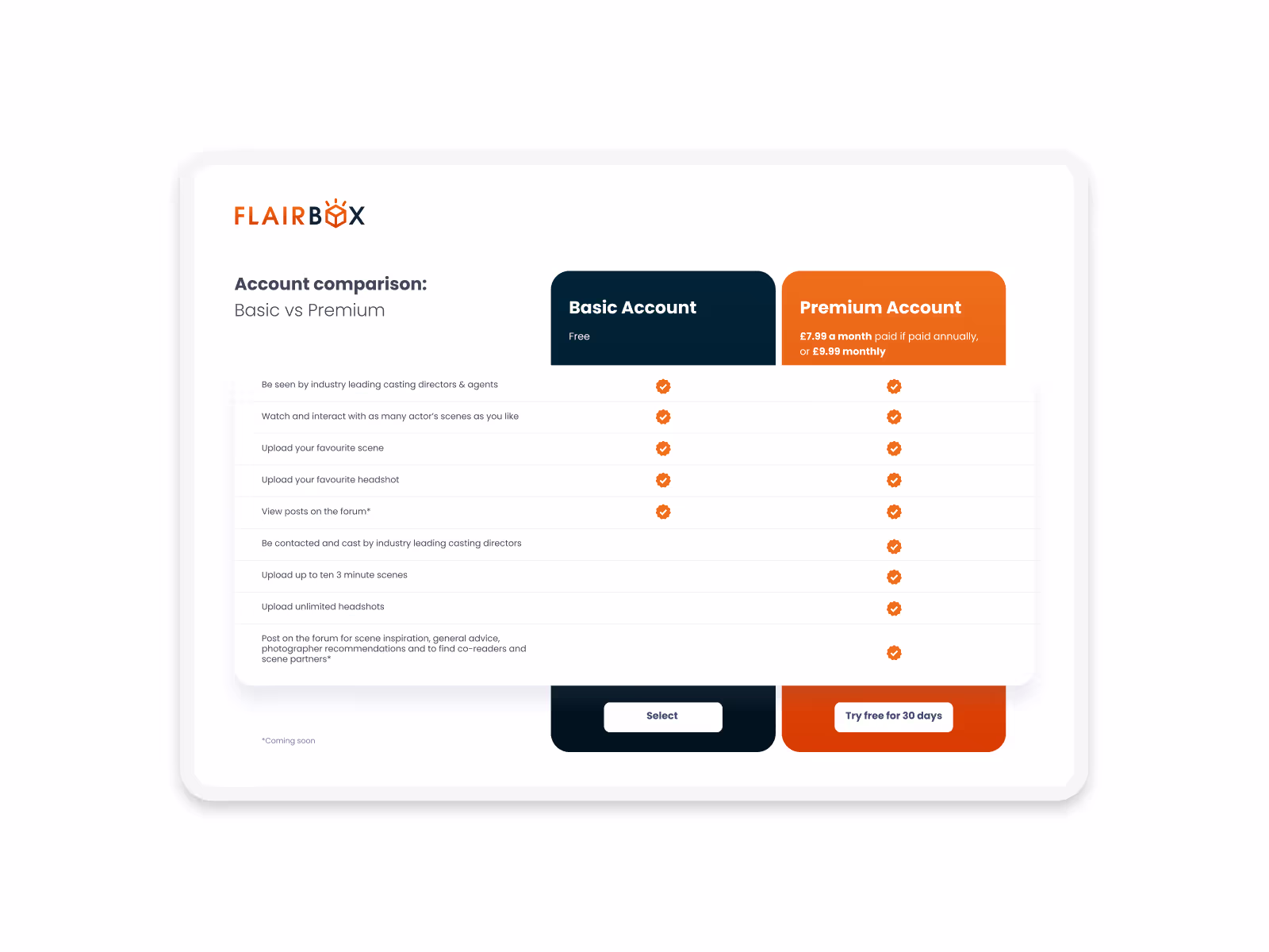 “Flairbox was one of our first clients, and being a start-up themselves, both parties walked into this project at similar stages in our organisation’s journeys. Armed with a brand, Flairbox approached us to design their new web-based application, a social platform where aspiring actors, directors, agents and managers could meet, upload content and apply for work. As this was a brand-new product, it provided us with the perfect opportunity to thoroughly research, test and design in-depth UX flows and UI components. The team at Flairbox were a pleasure to work with and gave the team valuable experience in how a successful project should run.”