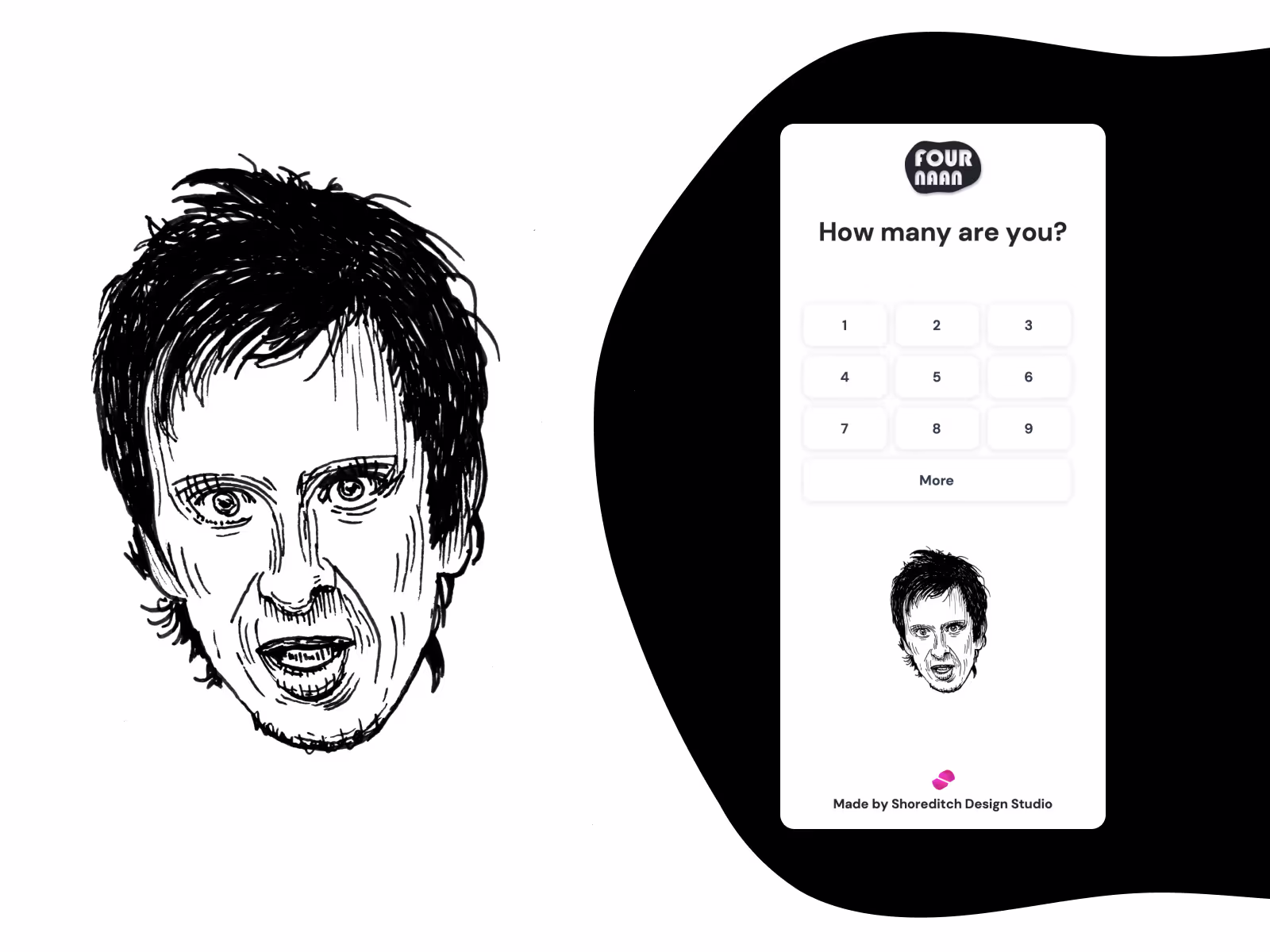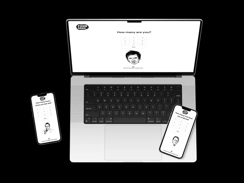 With Four Naan, we wanted to make a reference to this viral meme, giving users the possibility to calculate how many Naan breads they should order based on the number of people in the group, rice ordered, and how many hours ago they last ate. Using references to quotes used on the programme and character illustrations mixed with a simple and easy-to-use layout, we wanted to provide a handy solution to this naan ordering task.