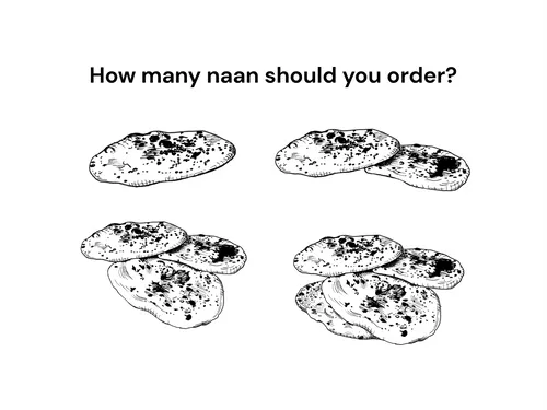 We created a simple online calculator to provide a solution to the problem that came up to the main characters of this series. Our app and web allows anyone to easily calculate an accurate number of Naan breads to order the next time they find themselves in this difficult task.