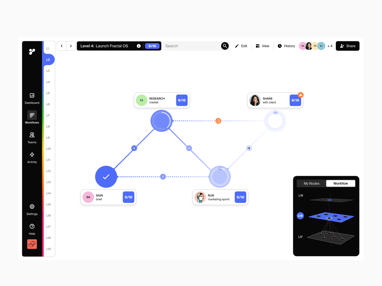 Fractal serves as the operating system and governance layer for human-machine organisations, addressing a range of challenges at the human-machine interface—from task and team orchestration to auditsUnveiling Fractal, the operating system powering human-machine organisations and the organised control of agents. We began with a brand workshop to align all stakeholders on the brand’s vision, aiming for a sharp and precise identity.