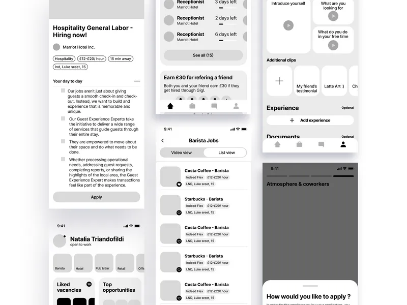 With only a 40-day design sprint to support their team, we undertook a complete and detailed UI, UX, + branding collaborative design process! We started with a UX wireframe plan, ensuring that the experience of using Gigl was breezy and fun. Next, we worked with their team to refine the branding. With a predominately Gen Z target audience, we researched what's trending and most appealing to their audience. We love the modern fonts, playful icons, and vibrant colour palettes.