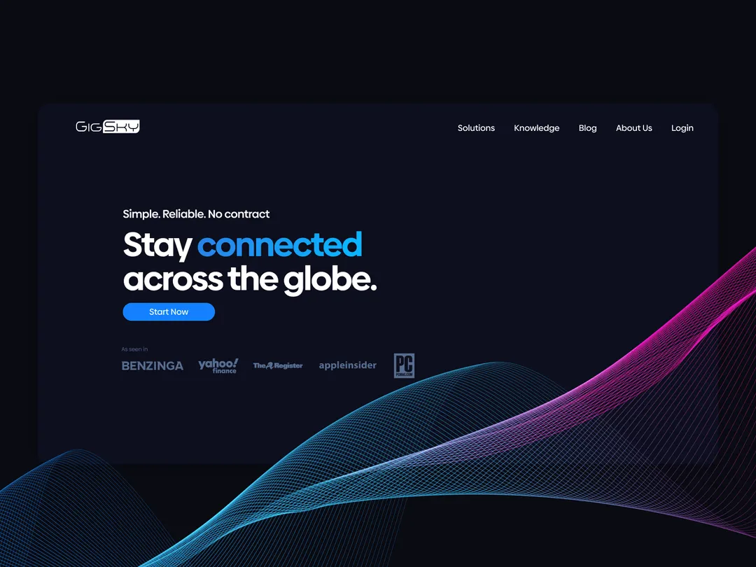 Since 2010, Gigsky have been connecting people around the world. They offer an eSim that lets you to grab a single data plan where and when you want. Their target demographic is people who travel to remote corners of the world or work from remote/ isolated locations like oil rigs and transport ships. They came to Shoreditch Design for a website design complete with a blog and a fully functioning to scale mobile version.