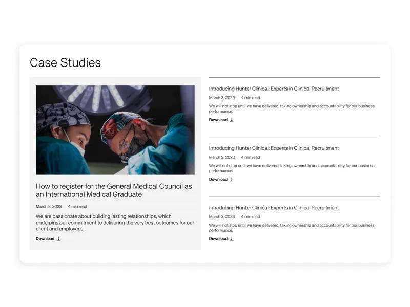 Hunter Healthcare, at it's core, is a healthcare recruitment company with the goal of working towards a better future for healthcare in the UK. Since its inception in 2011, Hunter Healthcare has successfully filled over 13,500 interim and permanent positions. They are working to improve the industry's future by finding the people who'll build it and matching them to positions where they can thrive.