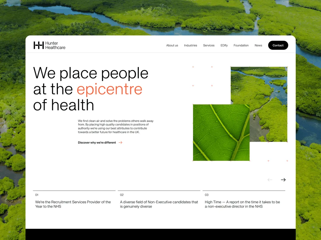 The Hunter Healthcare team connected with Shoreditch Design for a complete website redesign, with the goals of smooth user experience and an update their user interface to set them apart, following their exciting new rebrand by the incredible @mother.