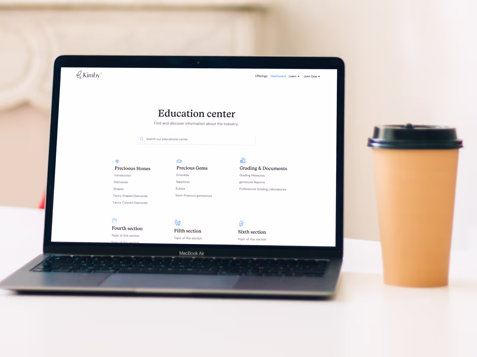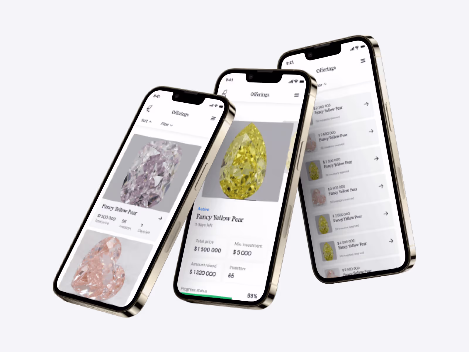 Kimby is a platform for fractional investment in diamonds and precious stones. Their founder reached out for creative support in the new brand, UI design system and product prototype for their development team to build out.