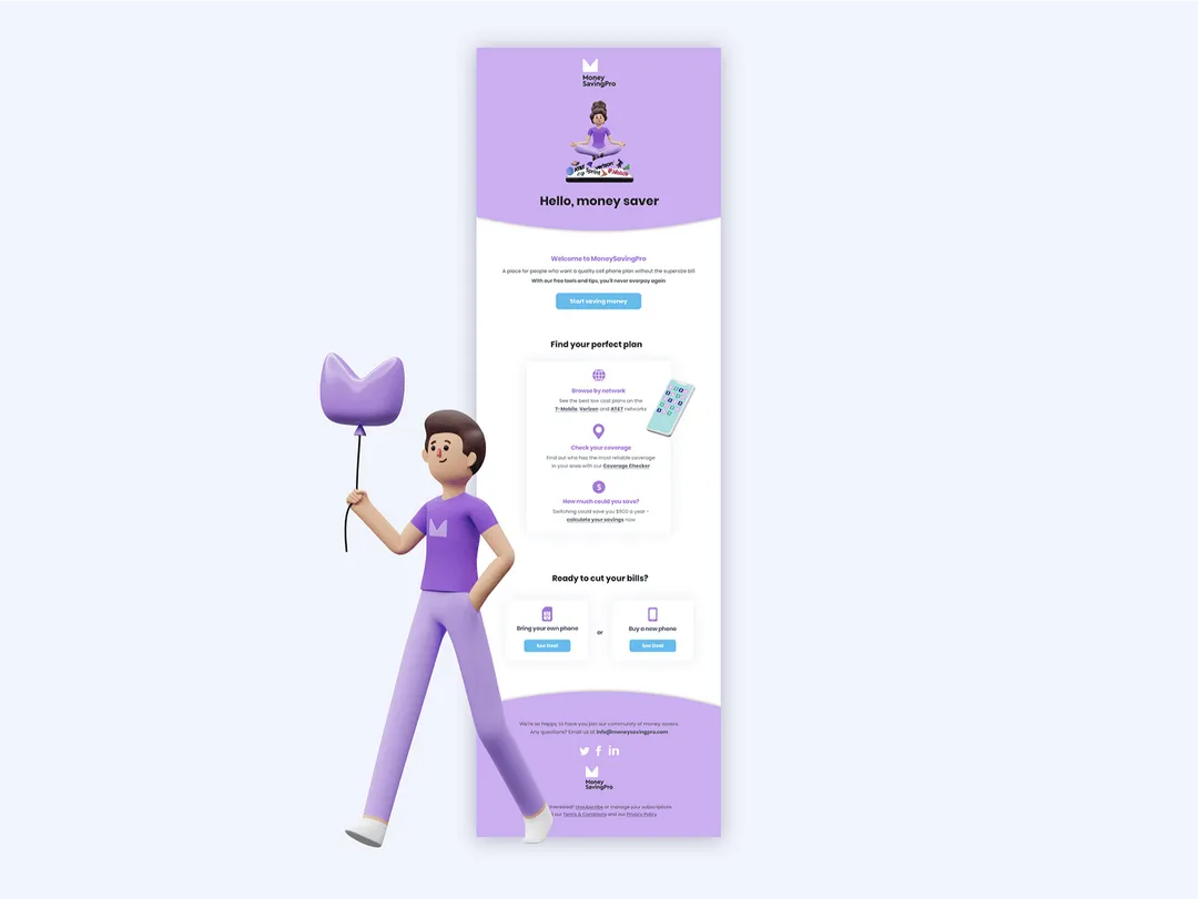Overall, Shoreditch Design gave MoneySavingPro a unique and identifiable brand personality, which has helped them remain competitive in the market. The complete website redesign + marketing assets succeeded in communicating their core values while making the site fun to navigate.
