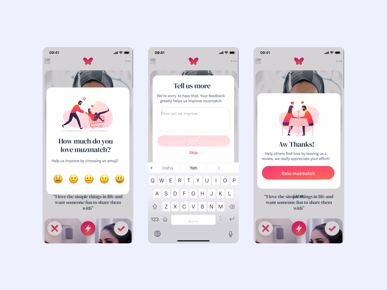 The team at Shoreditch really embraced the love with our choices in colour palette, logo and icons to enhance Muzz’s incentives of a match that ends in marriage.