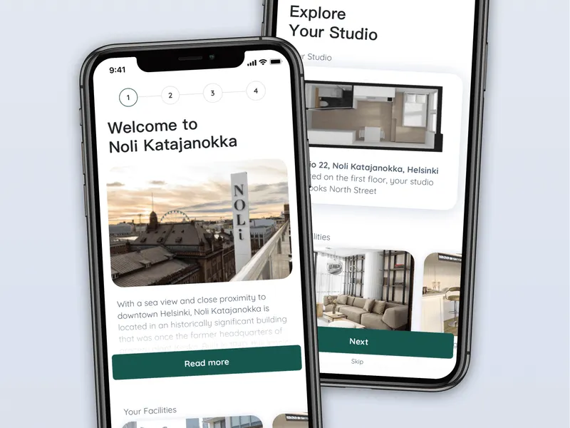 Noli is an app for a serviced apartment company in Helsinki & Vantaa in Finland. Noli Studios helps connect professionals with short or long-term stays with contemporary Scandi interiors and plenty of areas for socialising, co-working, and relaxing. Their tagline is ‘we give you the comforts of home with the amenities of a hotel.