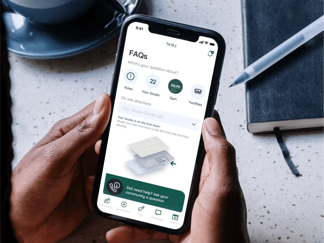 Since we had the framework of parts of the App already made, we focused on expanding and building out specific features like booking meeting rooms, extra visits from the cleaners, and extra amenities. We also helped develop an in-app door key to their studio, a messaging area so you can speak to the maintenance team and book repairs, and a guide to the building and local area. We helped expand their service to include everything a guest in the building might need.