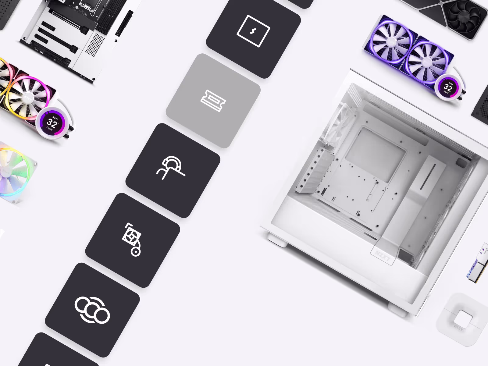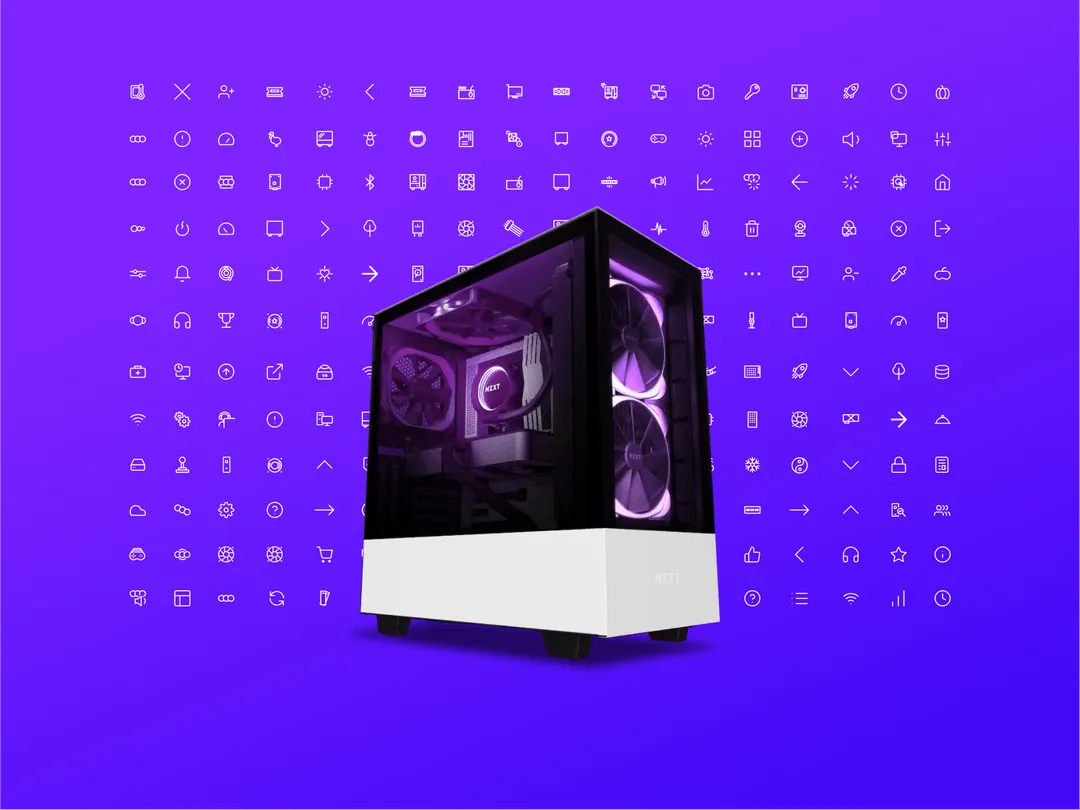 Ultimately, we created more than 200 custom icons for NZXT, covering everything from familiar UI icons to representations of their expansive product range.