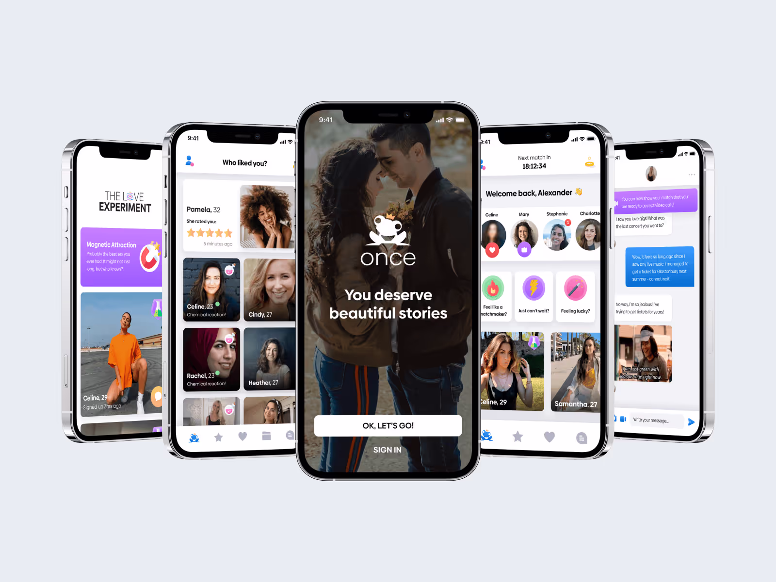 Following the relaunch of the app featuring our designs, Once was successfully acquired by a larger dating group for a reported sum of $18 million. The app has glowing reviews from influential lifestyle magazines such as Vanity Fair, Elle and Glamour. And most importantly, it continues to help its users find love.