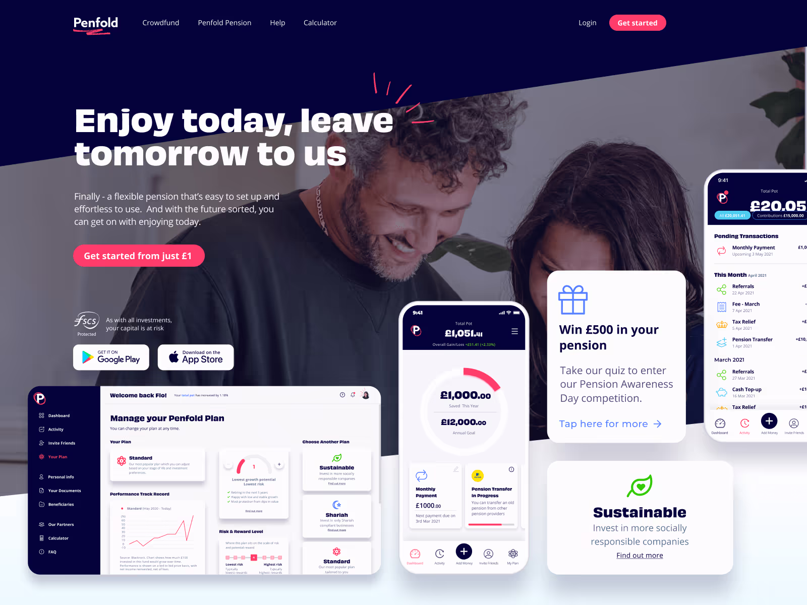 Penfold empowers its customers to take control of their future with their flexible, modern & faff-free pension platform. They believe everyone should be saving more, but the old school pension providers make it complicated and painful to do so. We were tasked with branding the next-generation pension platform and improving conversion through redesign of their landing pages.