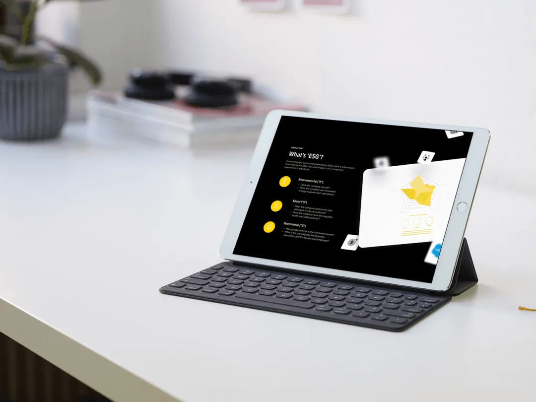 Inspired by the product used to navigate the complex world of Environmental, Social and Governmental ethics, we landed on a compass as the brand mark. We were keen to craft the typography and colour scheme to reach the professionality of salesforce widgets. While still embodying a creative, friendly identity with bright yellows to help distinguish them from the corporate style of competitors.
