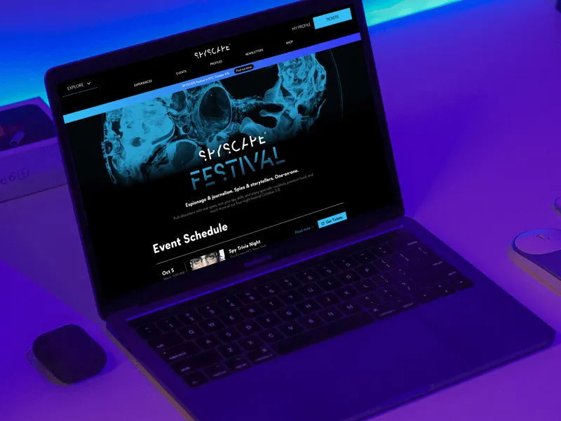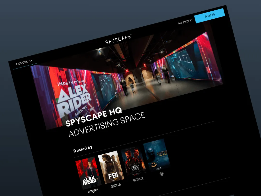 SPYSCAPE is a New York based contemporary museum that aims to immerse its public in spy and superhero narratives through diverse galleries and experiences. Based on their pre-established branding, we were asked to adapt their visual language to a new website, ad style and pitch deck design while respecting its guidelines to keep a strong and instantly recognisable brand.