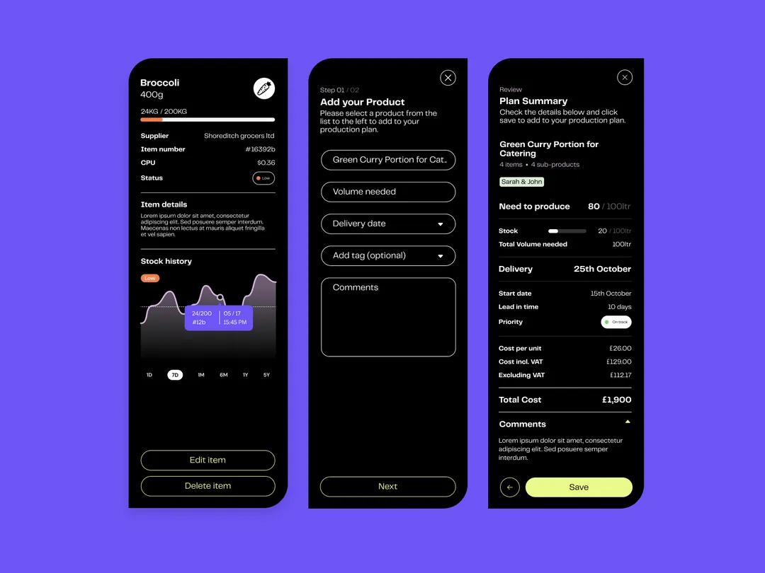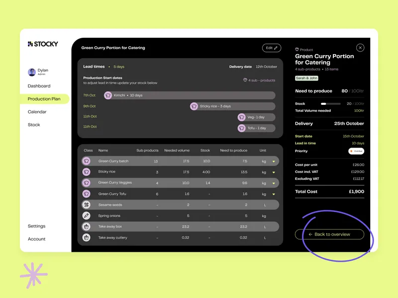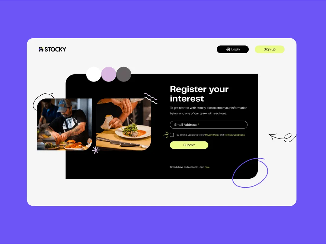 Stocky is a first in industry, SaaS product to reduce food waste and stress in the food industry. In a nutshell… Stocky allows the user to add their stock, create recipes and menus, and build an accurate, in-depth production plan - giving the user the exact stock quantity, recipe breakdown, schedule and costs to make their kitchen run smoothly without waste or stress.