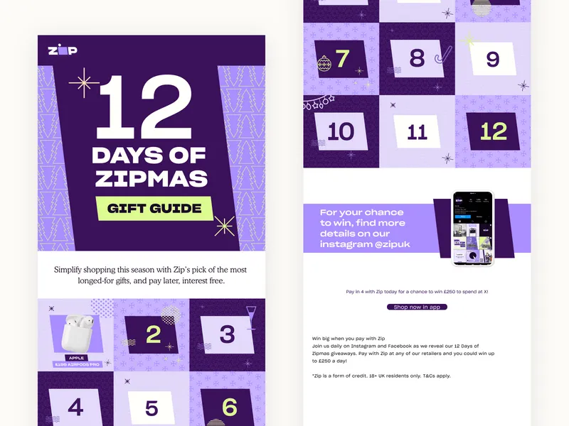 “It was most important for us to weekly come up with different ways to showcase the affiliate brands in a design that kept to the Zip branding but also ensured each newsletter had its own unique touch to it.”